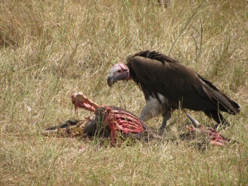 We did see a couple more lions eating the last of a wildebeest before beginning their “honeymoon,” an intense week of mating. I think there were more zebra and wildebeest on the hillsides than yesterday, as far as the eye can see.