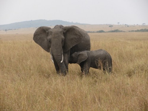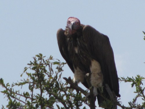 Back in the vans, we drove and drove and drove, stopping periodically to view some vultures, giraffes and wildebeest. Finally, just toward the end of the day, we saw three elephants with a baby who was nursing. It was a nice way to end the day.