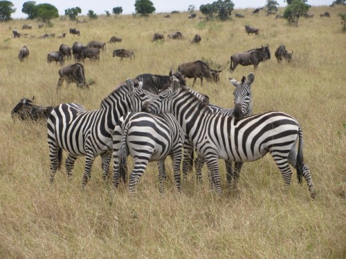 Driving just a little ways into Tanzania, we did a short walking tour down to the Mara river where we could see two large families of hippos. Hippos are very dangerous animals, coming out of the water at night to feed, so you only go to see them in the afternoon, when they stay in the water to keep cool. A armed guide took us down the river to see them and assure our safety. The closer we got, the more the hippos bellowed, letting us know we were close enough. Walking the other way up the river we saw a few crocodiles sleeping on the bank and some monkeys playing in the trees. Great sightings!