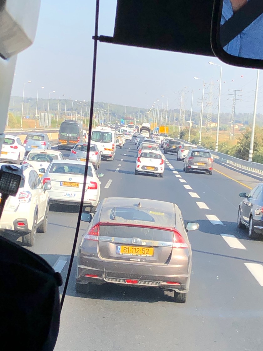 We finally landed safely in Tel Aviv. There were a LOT of people in line for immigration. I’m guessing five hundred or so. But also twelve people checking passports, so we got through, got our bags and got on the bus in about 45 minutes.