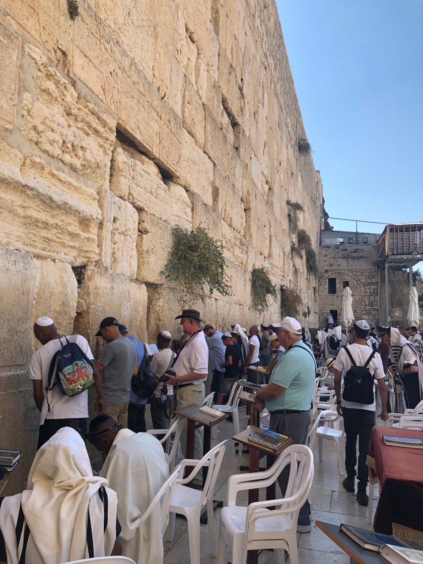 We next headed to the Western wall of Herod’s temple to join many others in prayer. I went to the left with the men, while the women went to the right. The crowd was still small when we arrived.