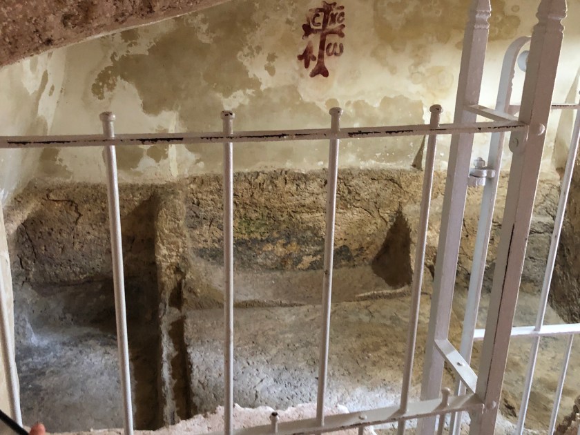 Caiaphas’ house is where Jesus was taken after his arrest in the Garden of Gethsemane and where Peter denied knowing Jesus three times. The house include some deep pits where Jesus May have been held prisoner before his trial. I read Psalm 88 to our group, and we thought about the only One we can cry out to for help when we’re “in the pit.”