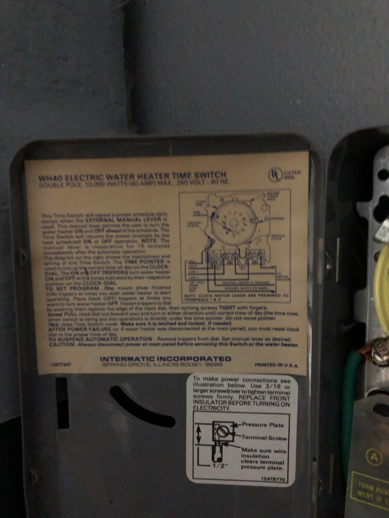 I foolishly headed right out to Home Depot to get a new one. I say foolishly because I forgot to look closely at the one on the wall, so I knew for sure what I needed to buy. When I arrived at Home Depot, I asked a friendly man standing at the main entrance in an orange apron, “Where are the water heater timers?” He sent me towards the water heater aisle, but that’s not where the timers are. I got on my phone to see what was in stock, and the app sent me towards the electrical aisle. It took a few minutes, but I finally found them on the bottom shelf. The thing is, there were about six different ones to choose from. They all looked pretty much the same, but were designed for assorted voltages and current, and I wasn’t 100% sure what I needed. Sigh. I went back home, took a look at what was on the wall, ordered the exact same one on Amazon and had it in hand the next day.