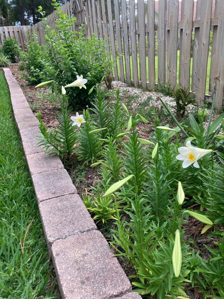 I’ve only planted eight of these lilies. They’ve multiplied over the years. I did a quick count. I will get over thirty blossoms in the next week or so. Beautiful white blooms announcing, “He is risen!”