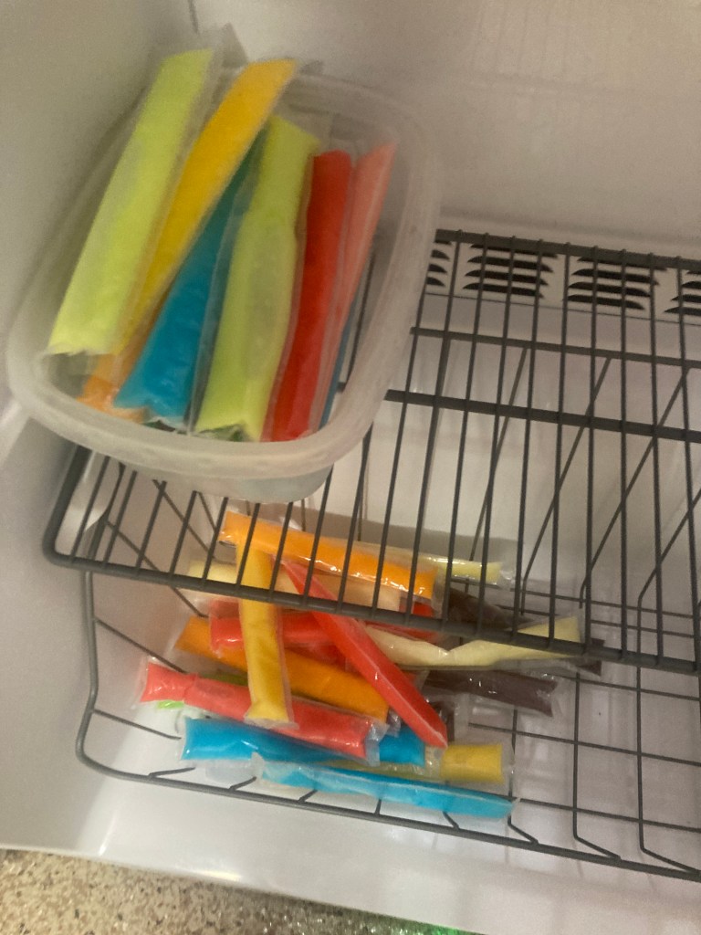 They’re cheap. They’re shorter than they used to be. They’re nothing more than flavored sugar water. They’re delicious. They go by Fla-vor-ice, Otter pops, Pop-ice, and freeze pops. We have a nice supply in our freezer. And they have been there my whole life.