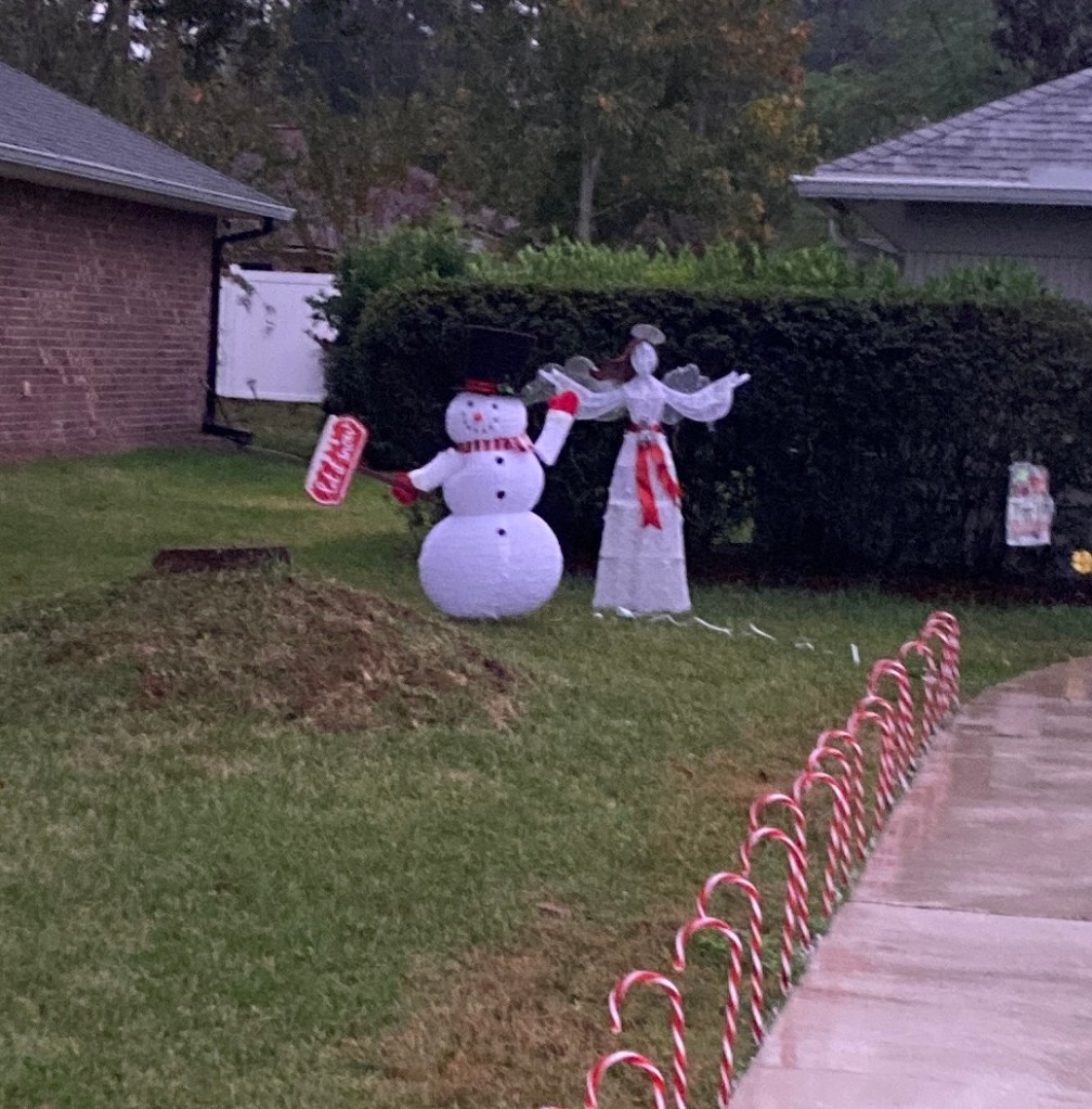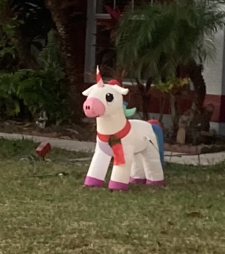 Here’s this year’s collection of Christmas yard decorations in my neighborhood.