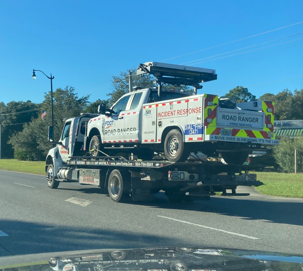 I did a double take the other day. Who does the Road Ranger call when the Road Ranger truck breaks down? The Road Ranger? Uh, probably not. Thank goodness for John’s Towing.
