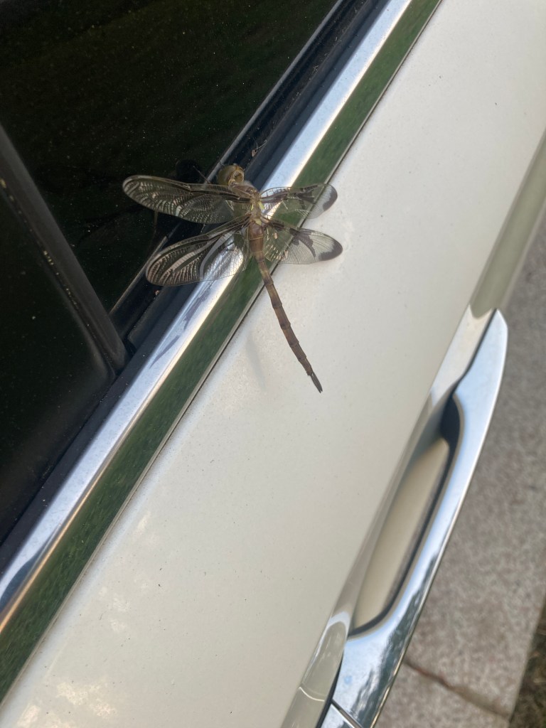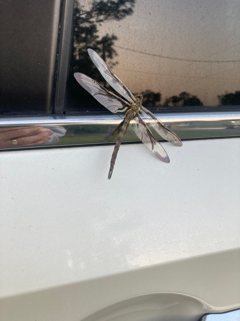 I noticed this impressive insect hitching a ride on the van as I got ready to leave this morning. With a nice four inch wingspan, I doubt he really needed transportation. He was probably just taking a break.