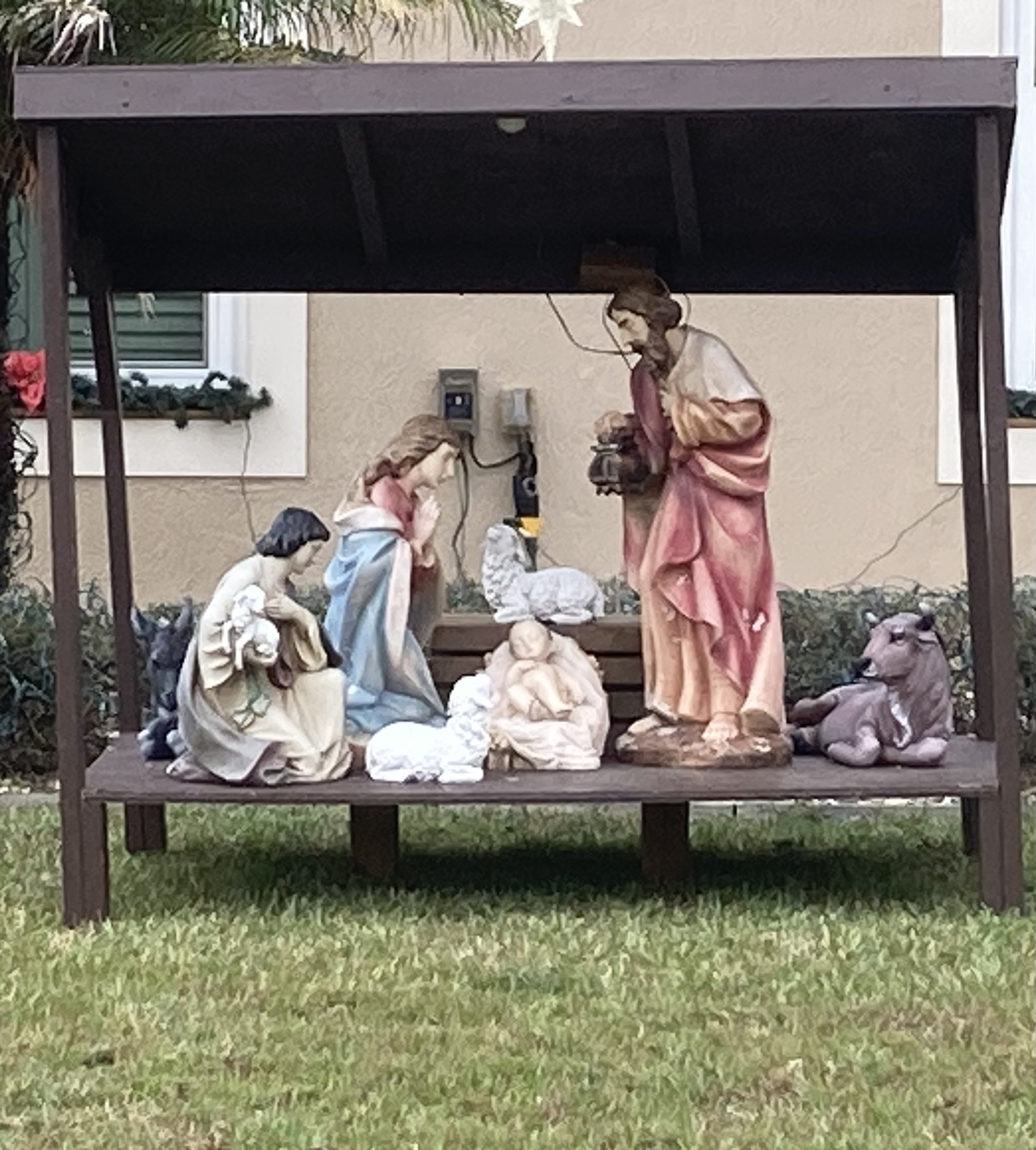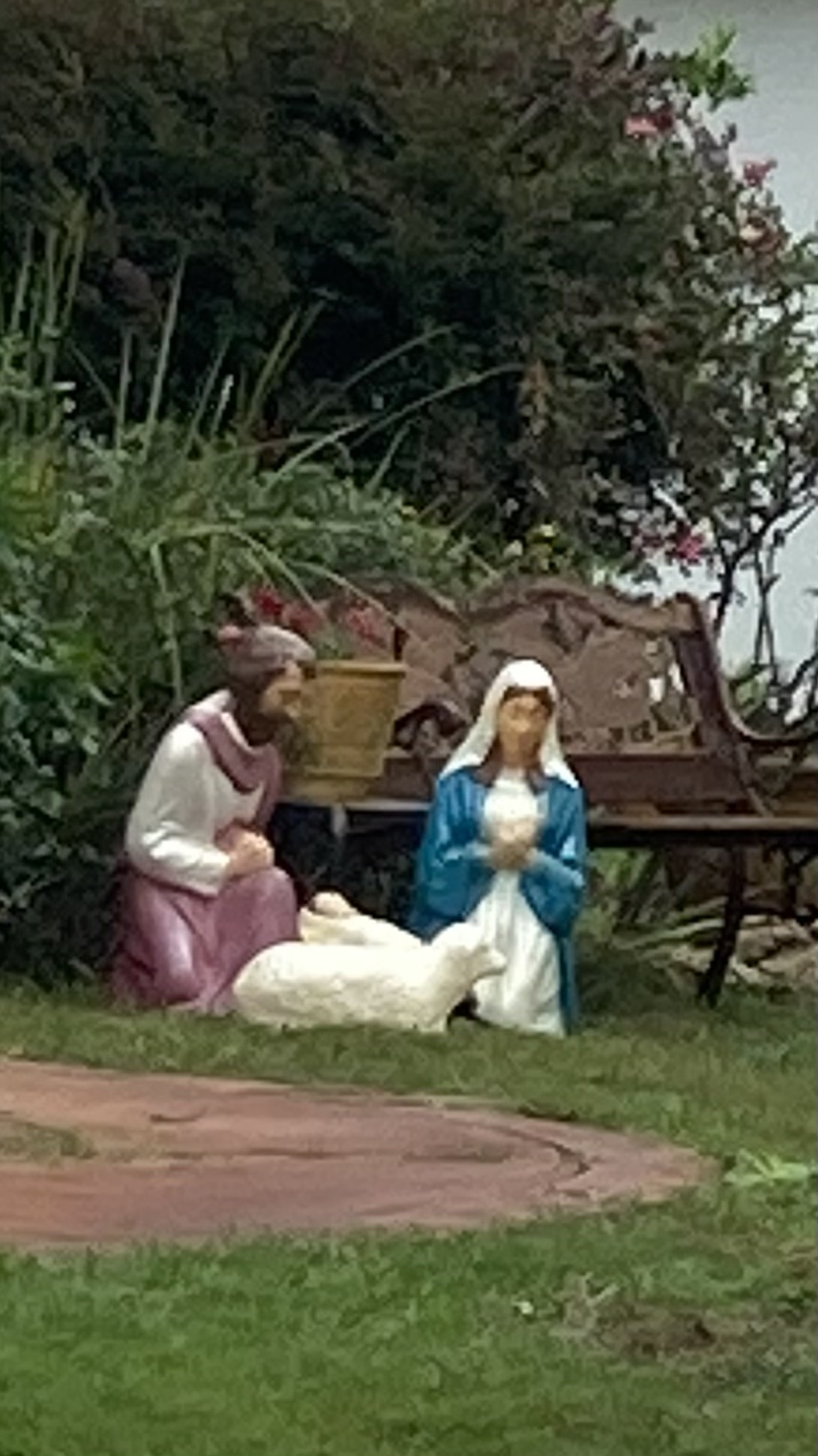 It’s simple and humble. I’ve seen several like this around my neighborhood. Christ is making a comeback in the annual yard decorations of Christmas.