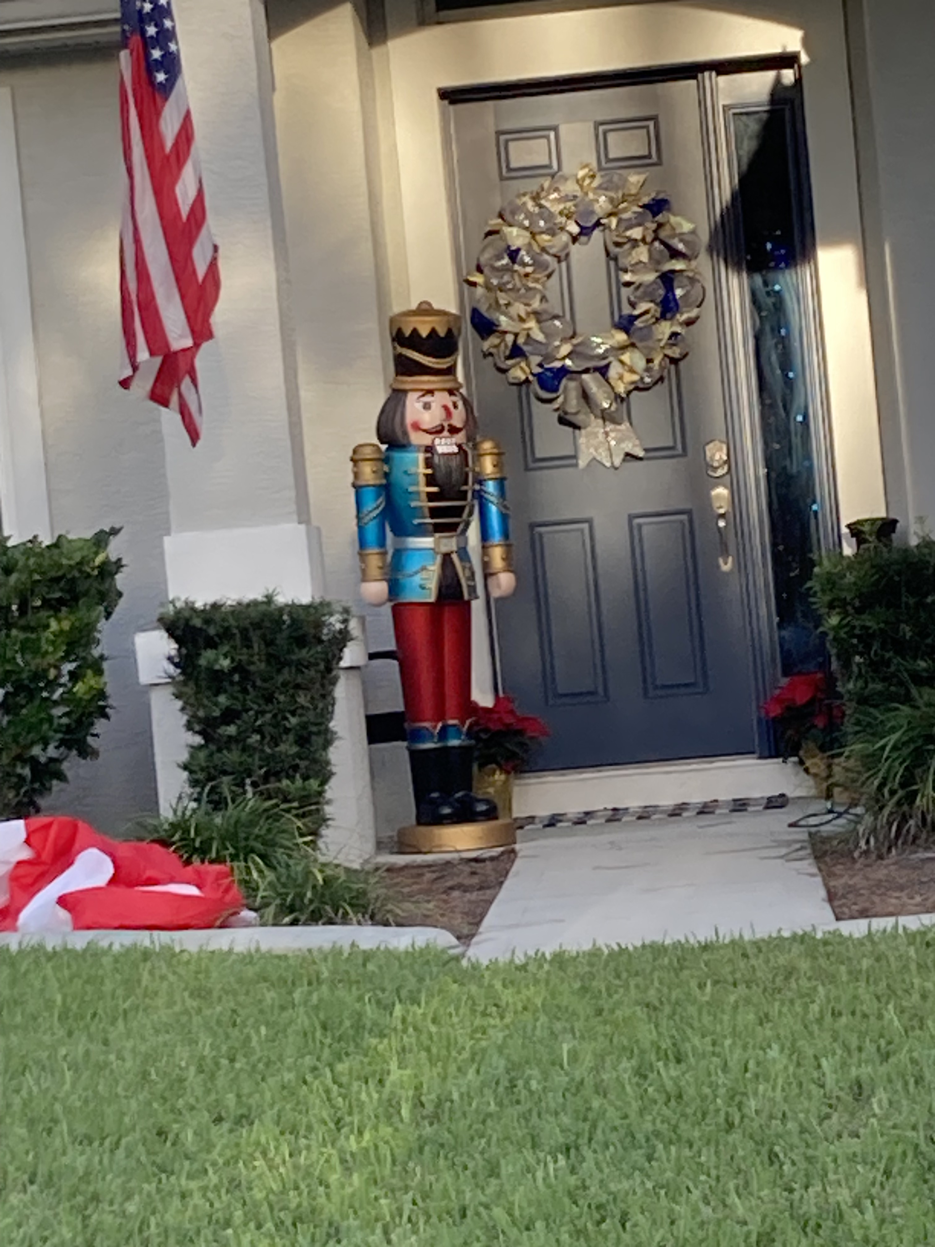 And I’ll leave you with these two iconic characters. That is a very nice, big nutcracker outside a front door. Then I was delighted to see Saint Nicholas welcoming all to this home.
