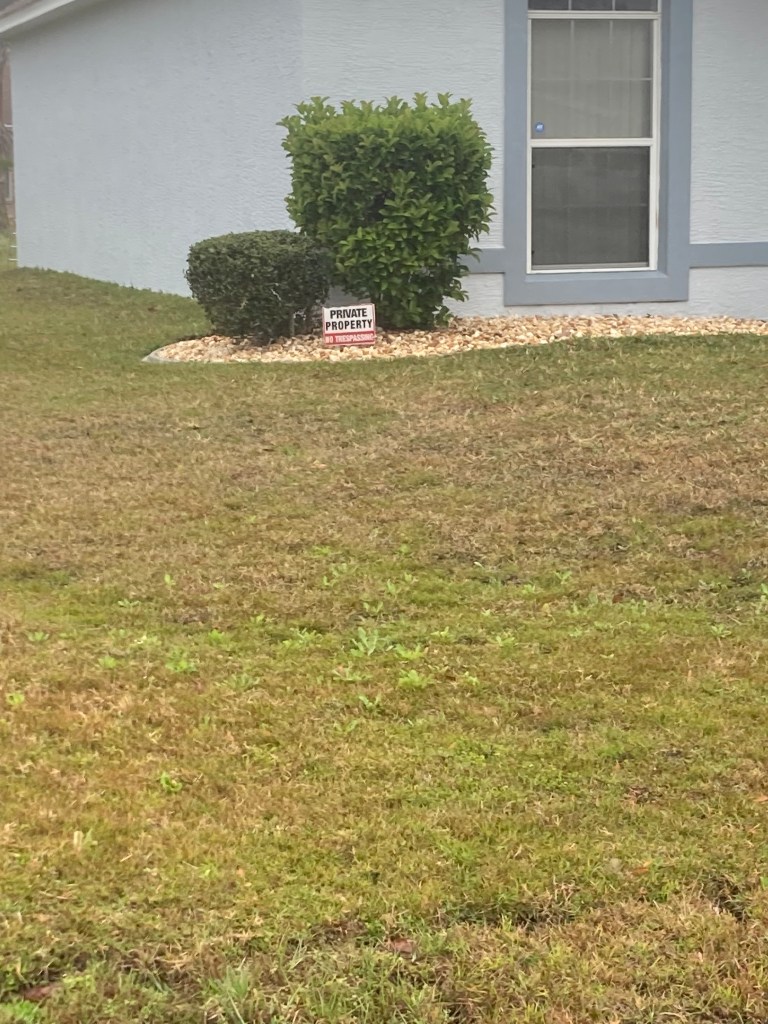 Why would you put a sign like that in your yard? It’s not like we’re in the middle of nowhere and someone might wander through and decide to hang out for a while. This is a residential area. All the property is privately owned. Random door-to-door sales people may walk up, but I’ve never thought of that as trespassing. And if someone did want to break and enter, they wouldn’t pay attention to a sign like that.