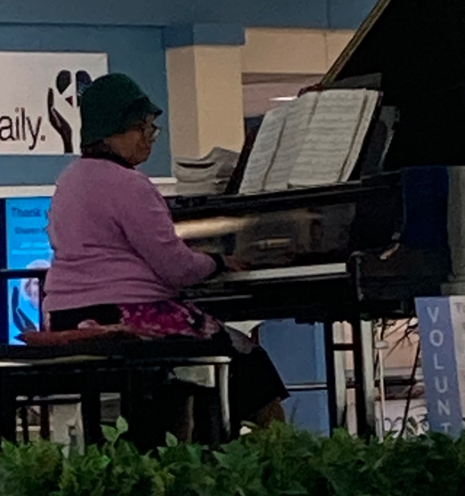 I was delighted to hear piano music as I settled into a rocking chair in the arrivals area of the Jacksonville, Florida airport. The volunteer was talented, equipped with a big stack of piano music.