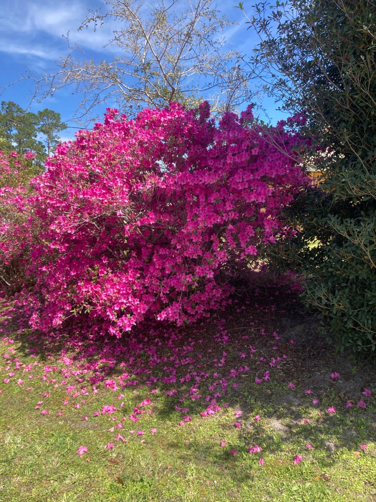 The dogs and I walk by this azalea at least three times a week. It’s only half a mile from our house on our favorite 1-1/2 mile loop. The last time I walked by, it was just a shrub. But with a little rain and arecent sunshine, it exploded into this gorgeous pink.