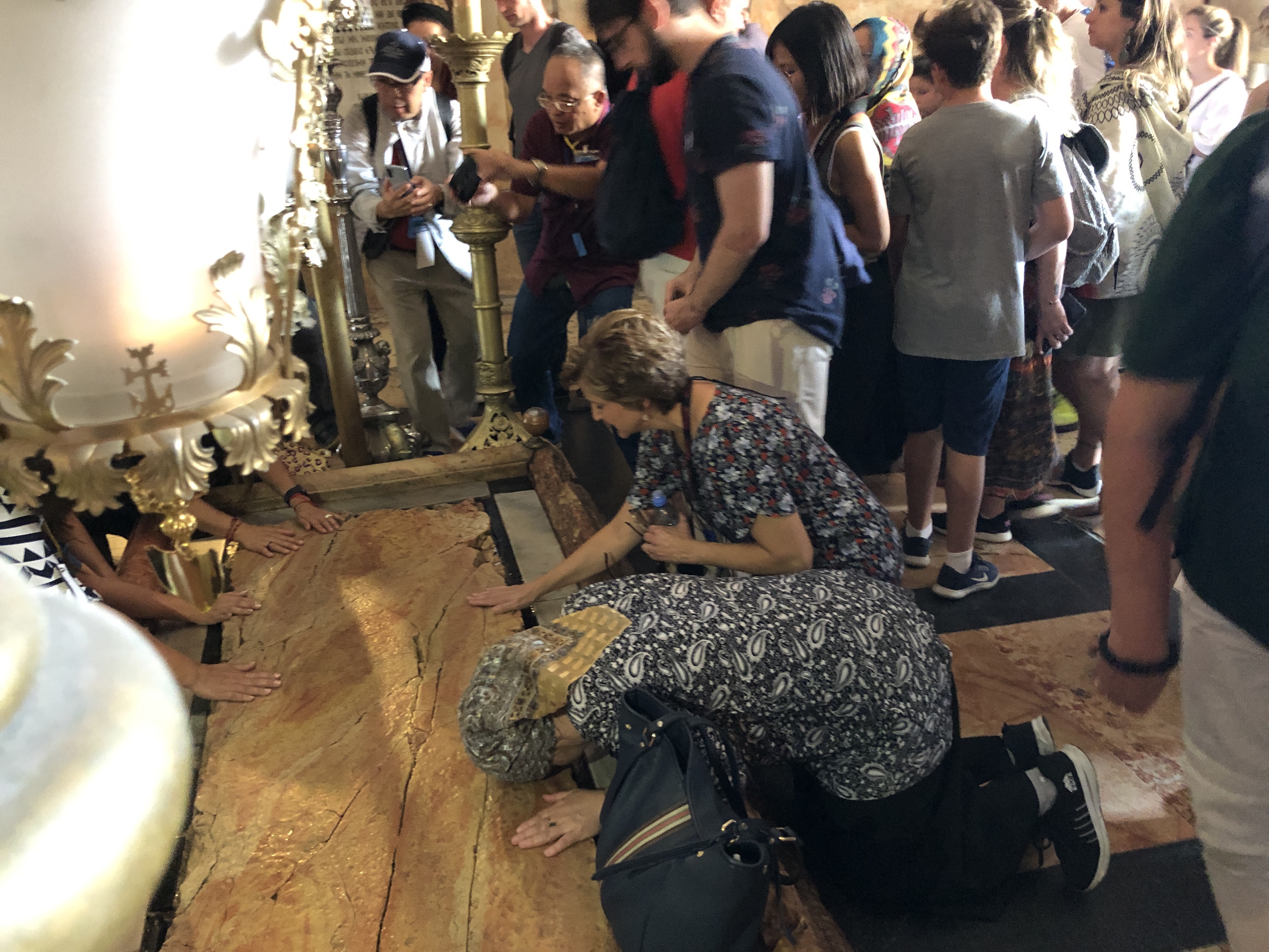 The stone of anointment, where Jesus’ body was prepared for burial.