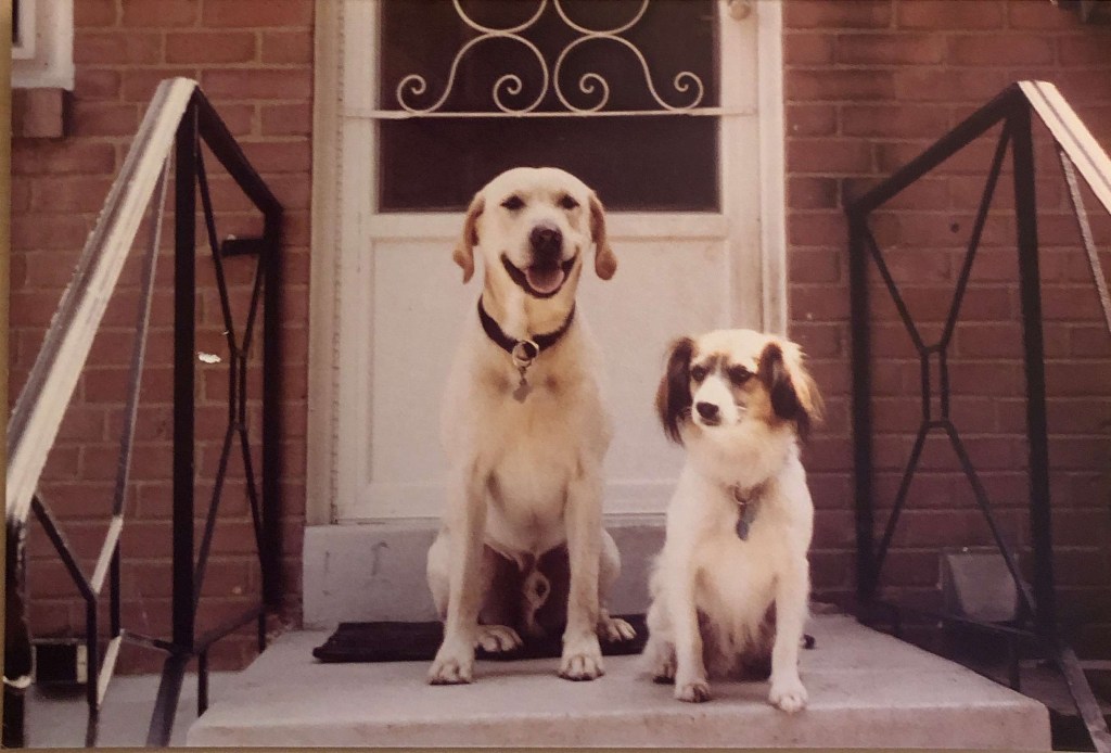And knocking at our door. You see, we had the dogs. We brought the yellow Lab, Gabriel, with us. We brought home a chocolate Lab, Rachel, a few months after we arrived in the city. They were great companions at home, on walks and when I went for runs. They were great watchdogs, too. Right after we arrived, a repairman came to the house to fix a lock. Gabriel had him pinned against the wall with a snarl I had never seen before.