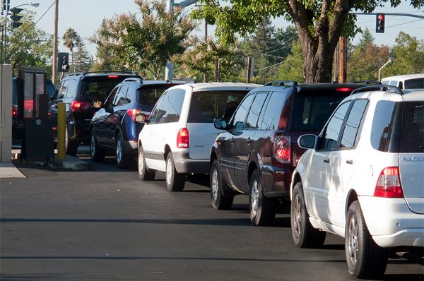 Much to my delight, he pulled in behind an unusually long line of drive through cars that wound around the building, through the parking lot, and out into the street.