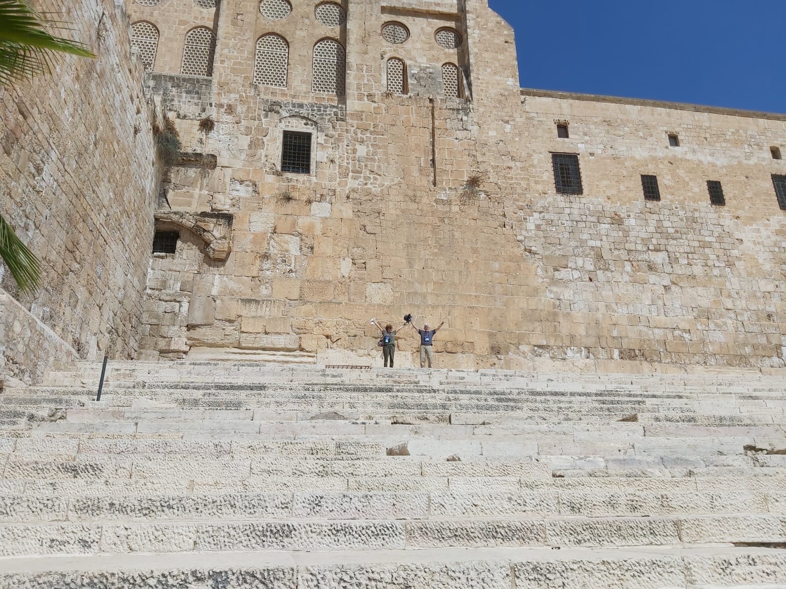 Rounding the corner, my wife and I ran up the southern steps as had many pilgrims before us. The steps are different widths, to keep folks from running too fast.