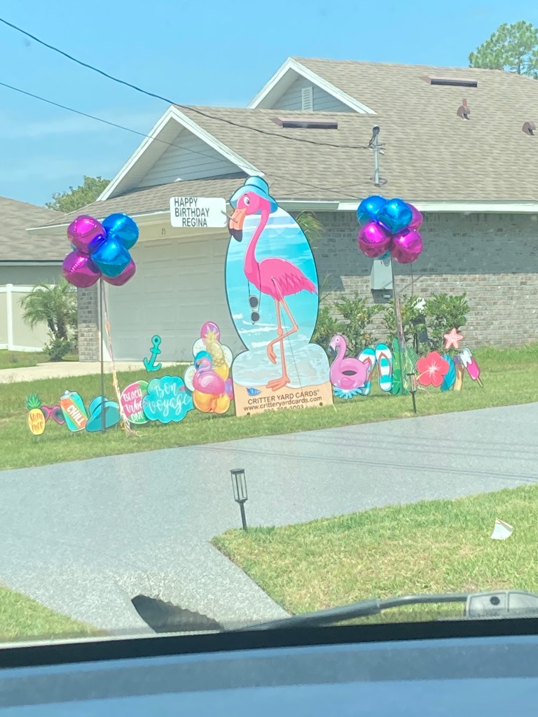 When my grandson celebrated his tenth birthday, a crop of cutouts appeared in his front yard overnight. I don’t know when they cruised through the neighborhood to set it up, but he was thrilled to see it all the next morning!